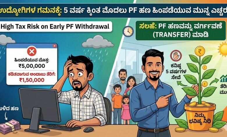 ಉದ್ಯೋಗಿಗಳ ಗಮನಕ್ಕೆ: 5 ವರ್ಷಕ್ಕಿಂತ ಮೊದಲು 5 ಲಕ್ಷ ರೂ PF ಹಿಂಪಡೆದರೆ 1.5 ಲಕ್ಷ ರೂ. ನಷ್ಟ ಸಂಭವ!