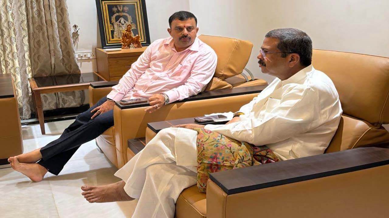 Minister Dharmendra Pradhan visit Karkala MLA Sunil Kumar House